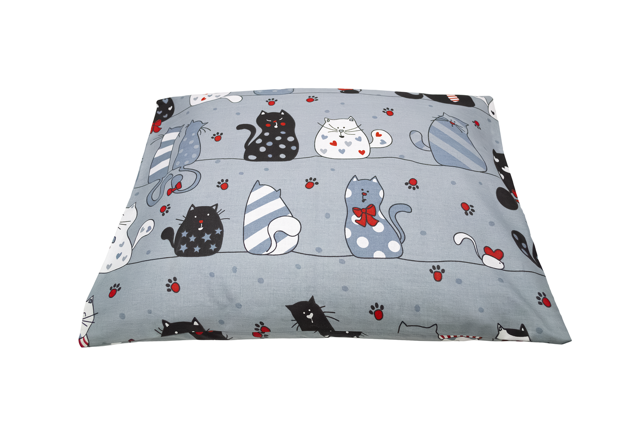 Ортопедична подушка для дітей з наповнювачем гречане лушпиння "Дитячий сон" 40х50 см ТМ БіоПодушка Котики на сірому